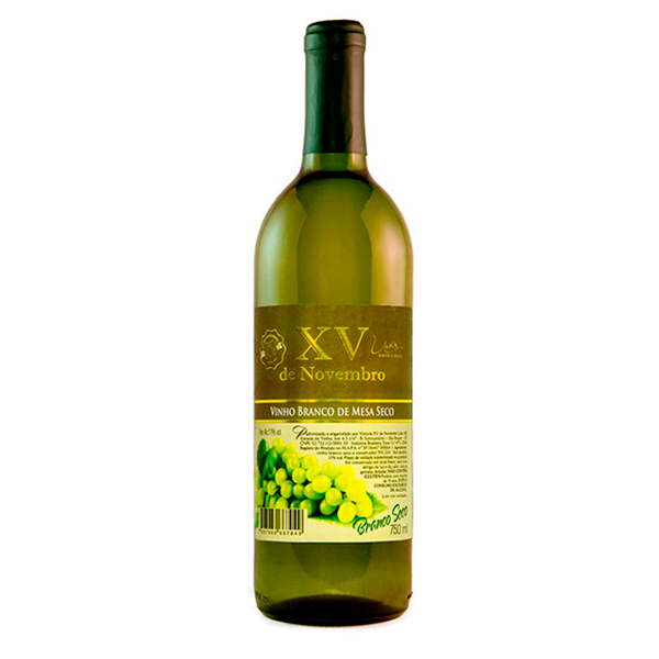 Vinho branco de mesa seco, elaborado a partir de uvas Niágara Branca.